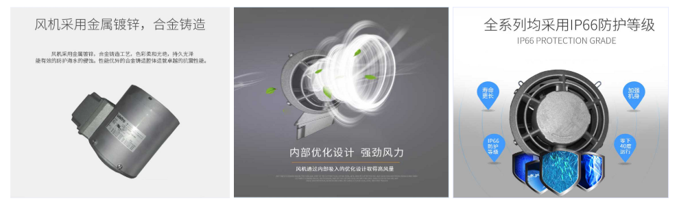 wistro風(fēng)機(jī)采用金屬鍍鋅、合金鑄造,能防護(hù)海水的侵蝕;性能優(yōu)異的合金鑄造腔體造就抗震性能,風(fēng)機(jī)通過(guò)背部吸入的優(yōu)化設(shè)計(jì)取得更高風(fēng)量;全系列風(fēng)機(jī)采用IP66防護(hù)等級(jí),加強(qiáng)機(jī)身,壽命更長(zhǎng),適用于各種場(chǎng)合模塊化系統(tǒng)。特殊型號(hào)可以在零下40度工業(yè)環(huán)境中運(yùn)行。