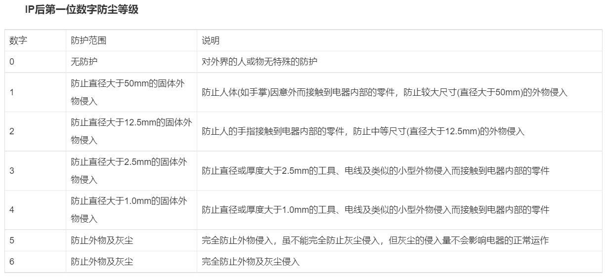 IP是Ingress Protection縮寫(xiě),IP等級(jí)是針對(duì)電氣設(shè)備的外殼對(duì)異物侵入防護(hù)的等級(jí),在這個(gè)標(biāo)準(zhǔn)中,防護(hù)等級(jí)多以IP后跟隨兩個(gè)數(shù)字來(lái)表述,數(shù)字用來(lái)明確防護(hù)的等級(jí)。 第一個(gè)數(shù)字表明設(shè)備抗微塵的范...點(diǎn)贊(0) 分享(0) 閱讀(2180)