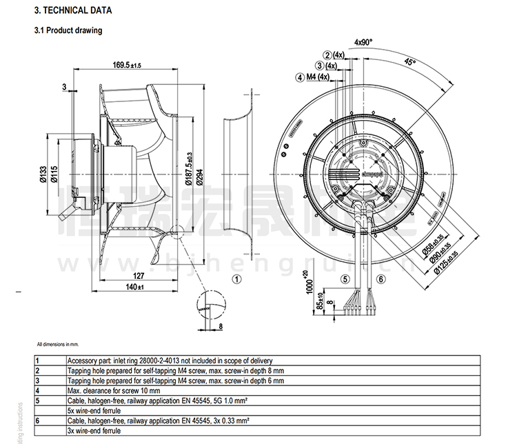 德國ebmpapst R3G280-RV70-01離心風機結構圖