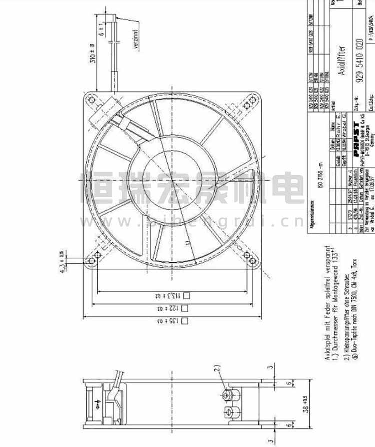 德國ebmpapst 5118N軸流風機結(jié)構(gòu)圖