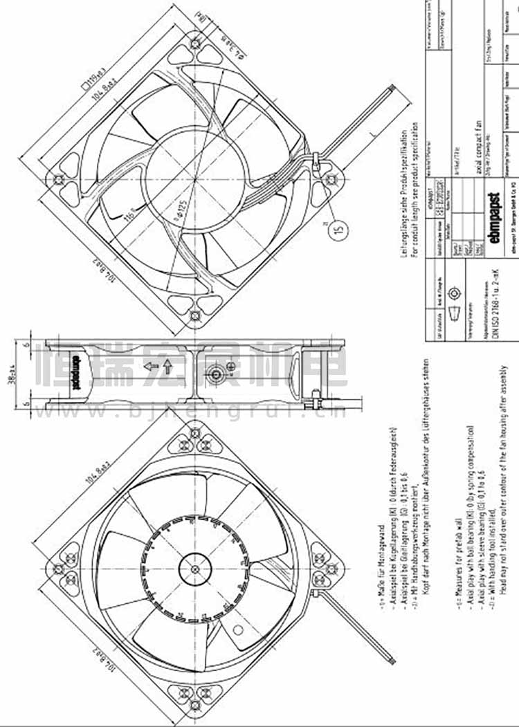 德國ebmpapst 4114NU軸流風(fēng)機結(jié)構(gòu)圖