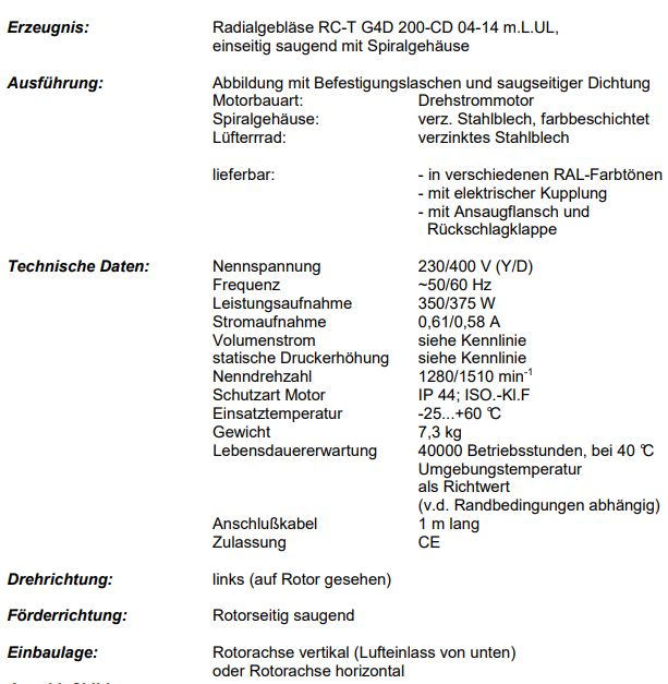 徑向鼓風機RC-T G4D 200-CD 04-14 mLUL,單側吸氣,帶螺旋外殼