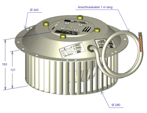 - 帶有熱觸點的電壓可控外轉子電機,常壓和特殊電壓下的三相電流