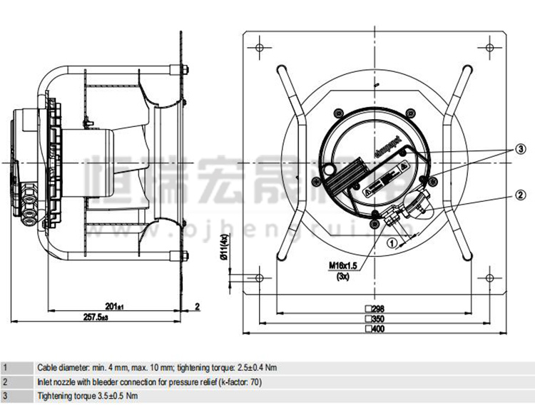 風(fēng)力發(fā)電風(fēng)機 250mm 3120m3/h K3G250-AV29-B4