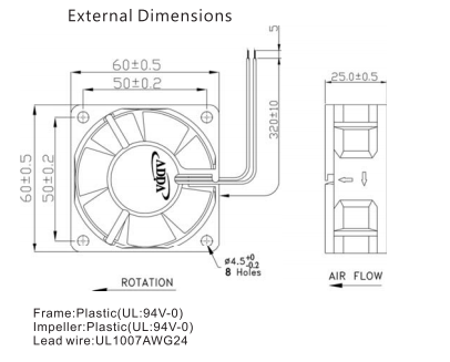 ADDA AD0605MB-A70GL 6025 5V 0.32A 機柜 打印機 儀器設備散熱