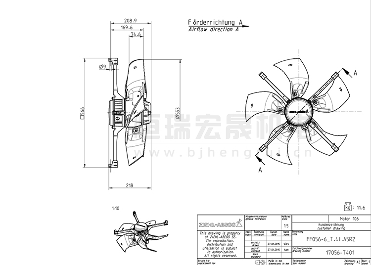 ziehl-abegg 施樂百 FF056-6ET.4I.A5R2 軸流風機