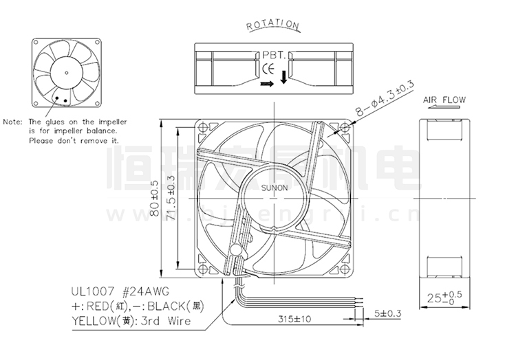 SUNON建準(zhǔn)風(fēng)機(jī) 80*80*25mm MF80251V1-1000C-G99