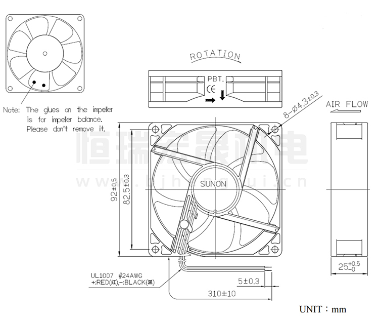 SUNON建準(zhǔn)風(fēng)機(jī) 92*92*25mm MF92252V1-1000C-A99