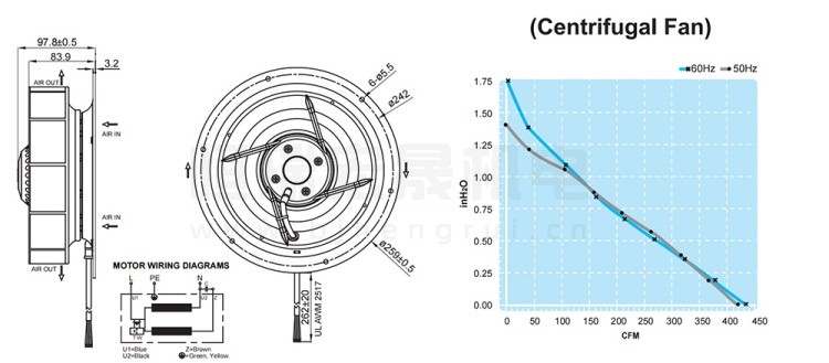 UF-220APA23H2C2F FULLTECH 福佑風機結構風量圖: